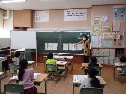 一つ一つの字の特徴や書き方のこつを教わった後、手本を見ながら、丁寧に字を書きました。