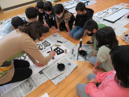 大石先生による書初練習【1・3・6年生】:12月9日(木)