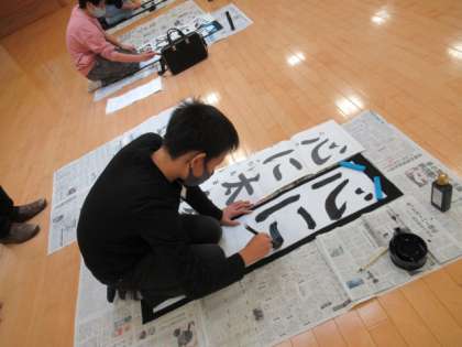 昨日に引き続き、今日も大石先生に書初指導をしていただきました。