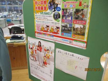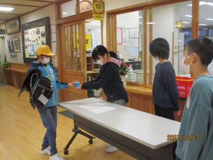 給食ボランティア委員が先週からお願いしていた募金箱を集めました。たくさんの人が協力してくれました。小さな支援の積み重ねが、大きな支援につながります。明日の朝も回収を呼びかけます。