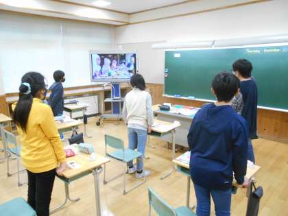 6年生は外国語科で、自分で考えたオリジナルカレーを紹介する活動に取り組みました。また、英語の歌は、表現力豊かにのりのりで歌っていました。