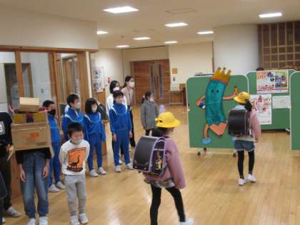 生活・安全委員会が企画した「あいさつウィーク」が始まりました。委員会の児童は、登校するみんなに大きな声で頭を下げました。ランドセルを教室に置いた子供たちも途中から参加して、気持ちのよいあいさつがホールに響き渡りました。