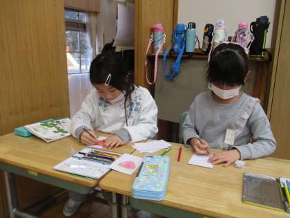 など、自分がやりたいお店を決めて、ものの名前やイラストをカードに書きました。
