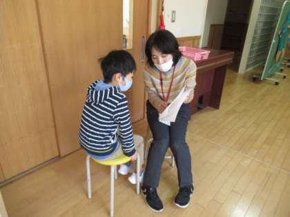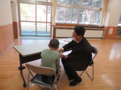 2学期に伸びたところ、これからの課題等を担任が一人一人に伝えながら「あゆみ」を渡しました。