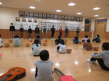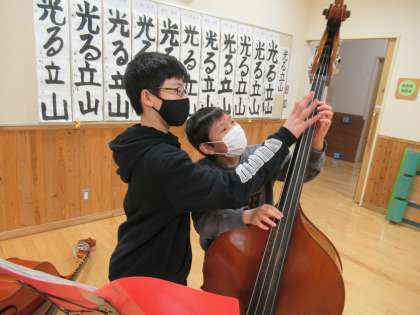 本日から、3年生が加入した新体制でのマンドリンの練習が始まりました。上級生が3年生に優しく教える姿が見られました。卒業式に向けて練習を重ねていきます。
