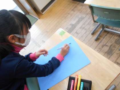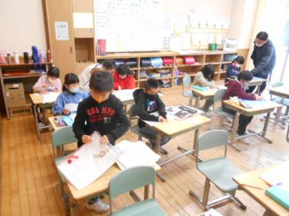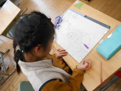 2,3年生は図工科で版画作りに取り組んでいます。今日は、下絵をかいたり、彫刻刀で彫り進めたりしました。