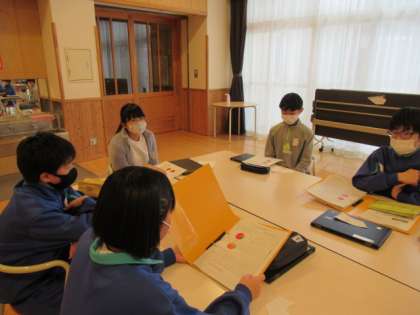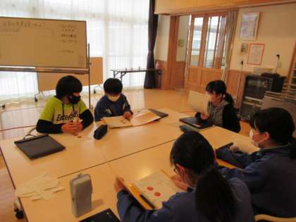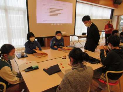 中学1年生と合同で、「総合」をしています。山田地域の産業について、これから、それぞれに課題を設定し、調べ学習が始まります。