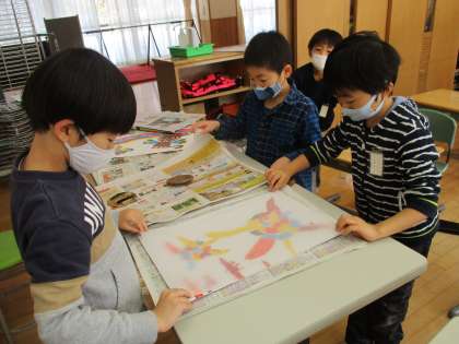 バレンでしっかりとこすり、カラフルな版画が仕上がりました。