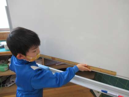 ロッカー、ホワイトボード、暖房器具などいくつもはかり、長さを実感しながら記録しました。