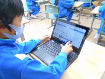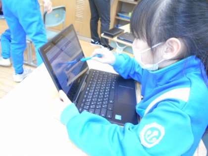 1年生は算数科で、クラウド教材(スマイルネクスト)を利用した計算の練習に取り組みました。子供たちの操作が慣れてきています。