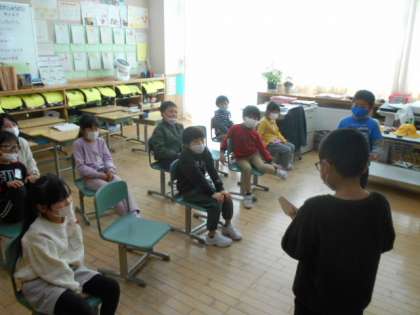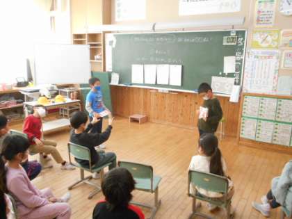 1年生は、○○名人と称して得意なことの紹介をしました。一人一人が個性的な発表をしていました。
