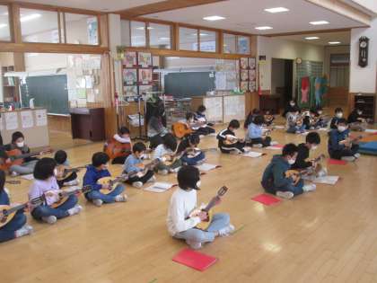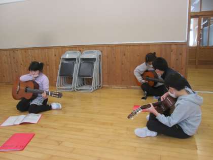 3〜5年生の新体制で、マンドリン活動を行いました。卒業式に向けて「威風堂々」を練習しています。