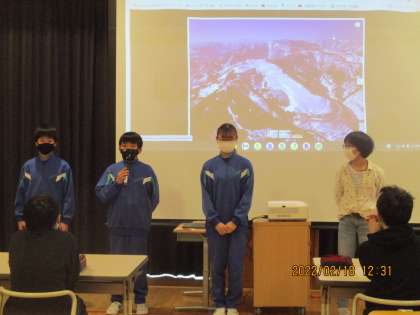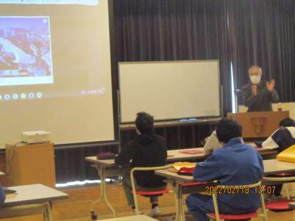 山田に生まれ育った地域代表の方を講師としてお招きし、牛岳温泉スキー場開発の歴史についてお話を聴きました。「やっかいものと考えられていた雪を逆に利用するという発想のよさ」や「地域の住民総出でゲレンデづくりが進められたこと」「スキー場ができたことで山間の村が明るく生まれかわったこと」などが子供たちの心に響いたようでした。