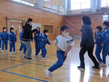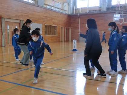 学年別に、最高記録を目指してみんなで協力して跳びました。