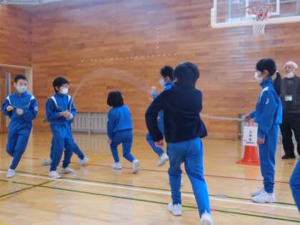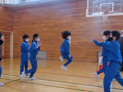 3年生の8の字跳びの様子です。 3年生からは、回し手も児童が行います。