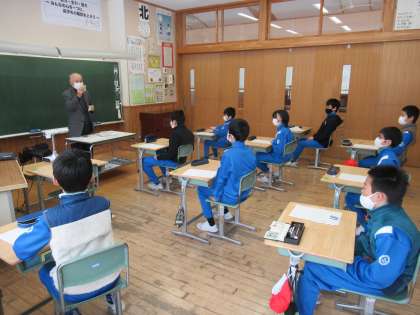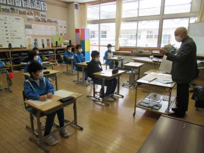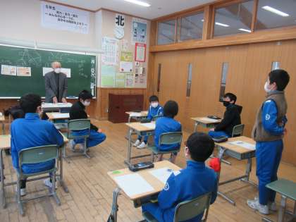 総合的な学習で、山田の特産物について学習した子供たち。学習のまとめとして、地域のそば名人の方に、そばを育てる上での工夫や努力等をたくさん教えていただきました。改めて山田のよさについて考えることができました。