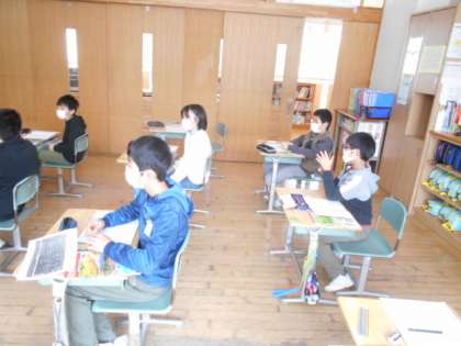 5年生は社会科で、国土における森林の広がりについて調べたり、資料から分かることを話し合ったりしました。山田地区に住む子供たちにとって身近な森林です。興味深く学習しました。