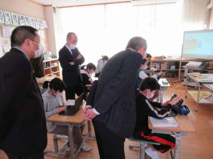 学校評議員の方々に来校いただき、授業を参観していただきました。日々の学習の雰囲気や、端末を利用した学習の様子が伝わったことと思います。