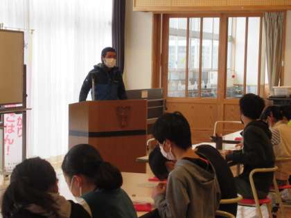 地域の産業について学んできたこの単元で、今日は、りんご園を営む藤田さんにお話を伺いました。藤田さんが、この地域でおいしいりんごの生産のためにと捧げる思いがひしひしと伝わってきました。子供たちも、その生き方に心打たれたことと思います。来秋の山田りんごがますます美味しく感じられそうです。