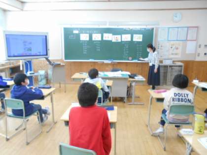 4年生は外国語活動で、朝から夜まで1日のくらし方について、時刻と合わせて考えました。それぞれの家庭での時間の使い方の違いを知り、和やかな雰囲気で授業が進んでいました。