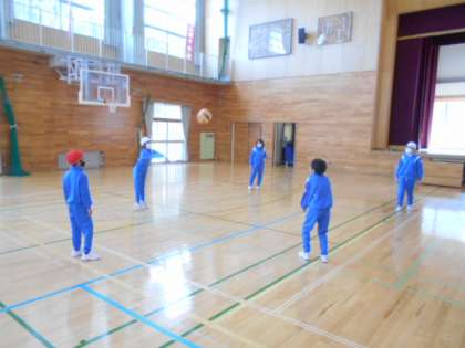3,4年生は、体育科で「ビーチボール バレー」をしました。チームの仲間とパスをつなぎながら相手コートにボールをかえし、得点につなげていました。