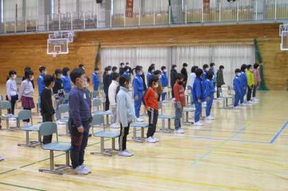 式の心構えや門出の言葉等、どのような姿や声で行うと、感謝や祝福の気持ちが伝わるかを考えながら、真剣に参加しました。