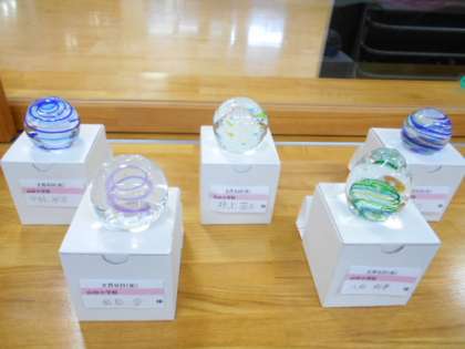 6年生が卒業記念作品として制作したガラスのペーパーウエイトが届きました。一人一人の思いが込められた素敵な作品が揃いました。