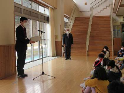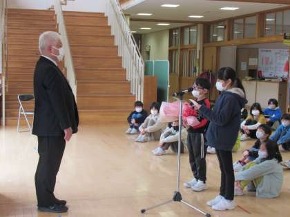 算数や体育の学習でお世話になった学びサポートの先生とお別れの式を行いました。最後のご挨拶で、それぞれの学年のよさや山田小のすてきなところを子供たちにお話ししてくださいました。