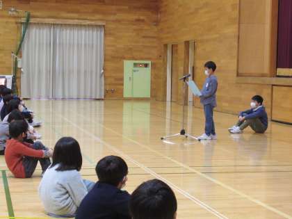 式の後、5年生代表と3年生代表の児童が、一年間でがんばったことを発表しました。