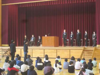 お世話になった先生方、職員さんとお別れの式を行いました。背筋を伸ばし姿勢良く、最後までしっかりと話を聞きました。