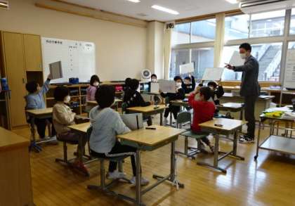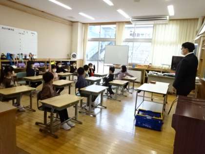 上から、2年、5年教室の様子です。明日入学する1年生を入れて、この3つの学年が1階で生活します。