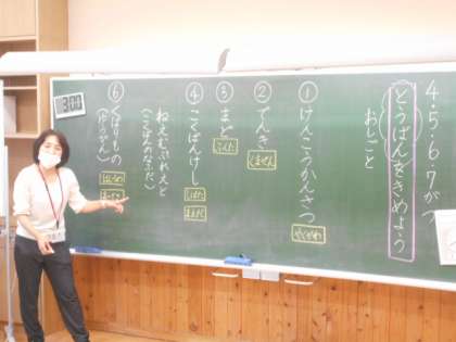1年生は、みんなが気持ちよく生活ができるようにクラスの仕事を考えて決めました。決まった仕事を忘れないようにつとめてください。みんなの役に立ちますよ。