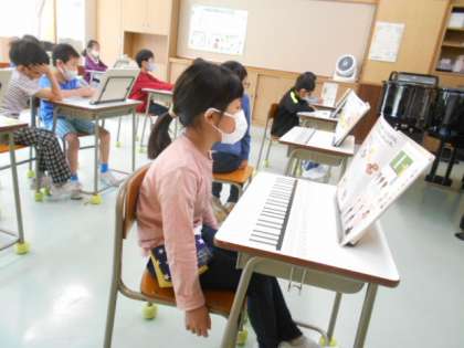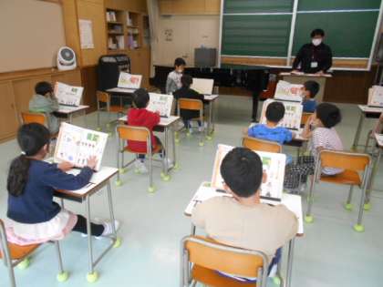 2年生は「ドレミの歌」等、教科書にある楽曲をリズムに合わせて歌唱しました。
