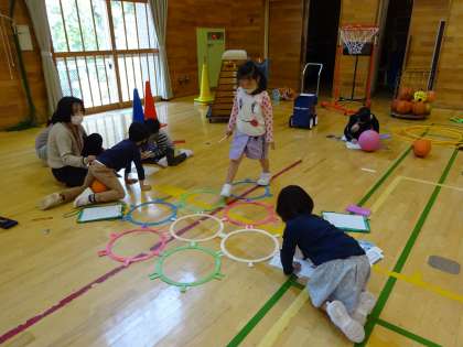 興味津々に道具を見たり触ったり試したりしていました。見付けたものをよく見てカードに書くこともできました。