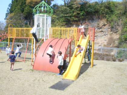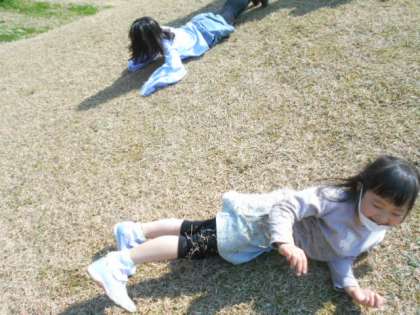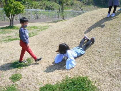 よく晴れた昼休みに、芝生広場では子供たちが思い思いに自由遊びをしていました。
