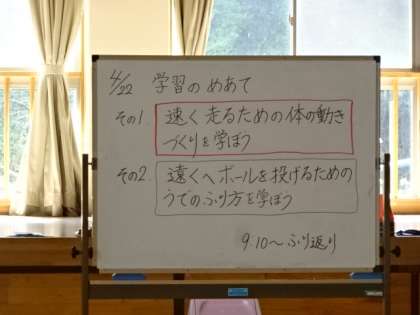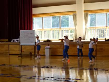 担任が出張のため、5年生は校長先生と体育の学習をし、速く走るための体の動きや、投力を高める腕の振り方について学びました。スポーツテストで記録を測定するのが楽しみですね。