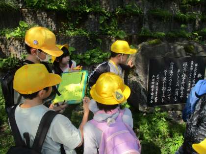 地域の方に元気にあいさつをしたり、みんなでクイズを解いたりしながらウォークラリーを楽しみました。「もう少しだよ。がんばろう」「一緒に考えよう」など、温かい声かけが飛び交っていました。