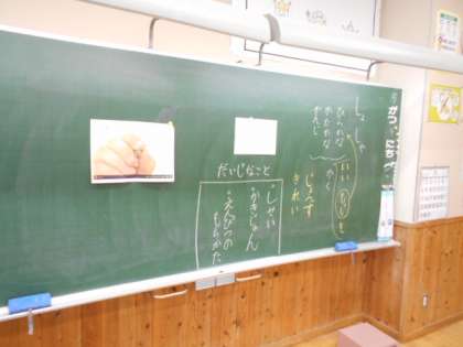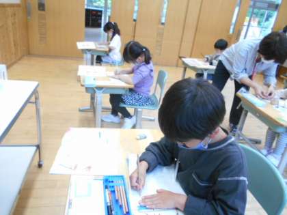 1年生は鉛筆の持ち方や字を書くときの姿勢等に気を付けながら、書き方の学習に取り組みました。適度な筆圧で書いている様子がうかがえました。