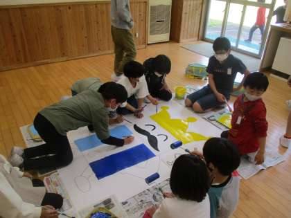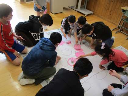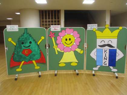 今年度の児童会キャラクターは、全校から色塗り隊を募集し、1〜6年生で協力して作りました。このキャラクターたちは、集会やあいさつ活動等、さまざまな場面で活躍する予定です。キャラクターたちと一緒に山田小学校を盛り上げていきましょう!
