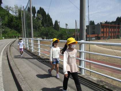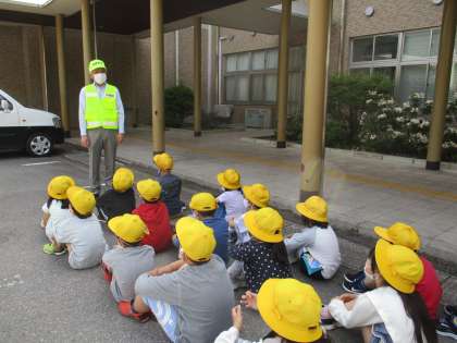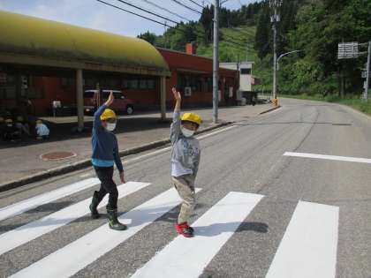 交通安全教室では、登下校の歩き方を確認しました。一年生のお手本となるすばらしい姿が見られました。安全に気をつけて横断歩道を渡っていました。