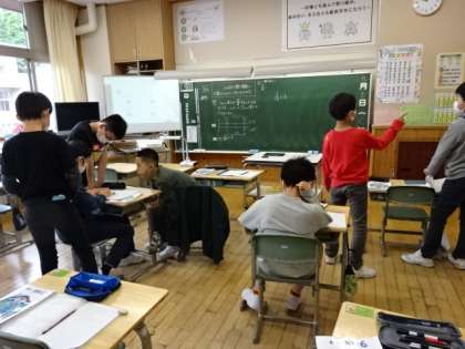 自分の考えがつくれたら、友達のところへ行き、考えを交流しています。