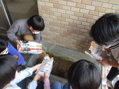 メダカの水槽の掃除をしました。水を入れ替えたり、新しい赤玉土を入れたりしました。みんなで協力して育てていきましょう。