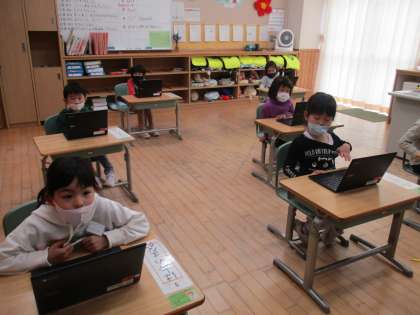 まず、パソコンの正しく安全な使い方や、ネットの利便性と危険について学びました。約束を確認した後は、実際にクロムブックを使い、パスワードを入力してログインしたり、クラスルームに入って学校ホームページを閲覧したりしました。