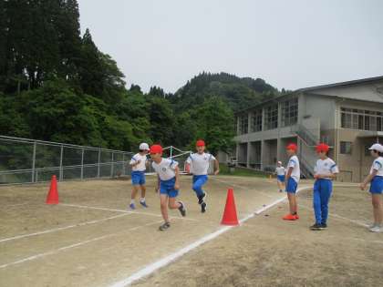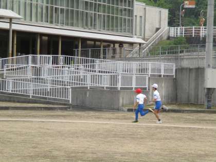高学年の体育では、リレーの練習をしています。お手玉を置いて走り出すタイミングをつかんだり、バトンパスの様子を撮影してよりよくなるように話し合ったりするなど、意欲的に取り組んでいます。