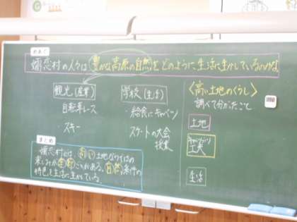 5年生は社会科で、「高い土地の人々のくらし」について学習しています。教科書に掲載されている群馬県嬬恋村の人々が、高い土地の自然条件や気候条件に合わせて、工夫をしながら生活をしていることを学びました。