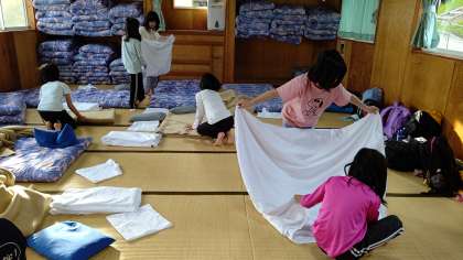 6時、子供たちは元気に起床しました。部屋の片付けからスタートしました。