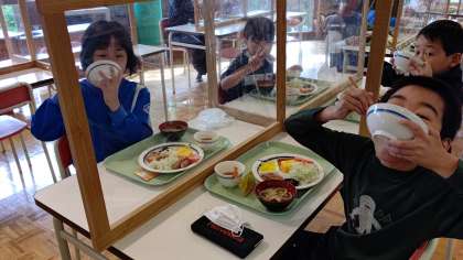 2班の様子です。みんなもりもり食べています。