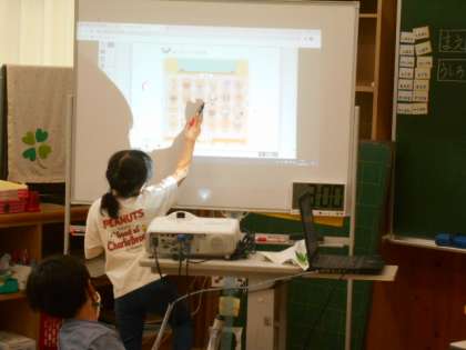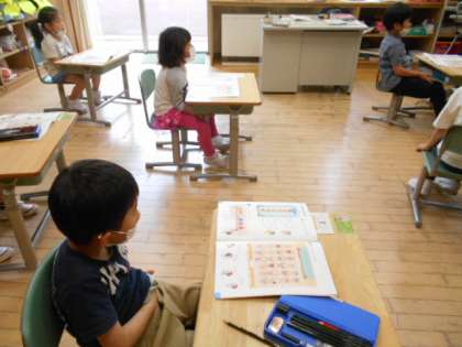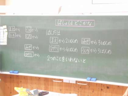 1年生は算数科で「前から何番目?」「後ろから何番目?」のように順序について学習しました。