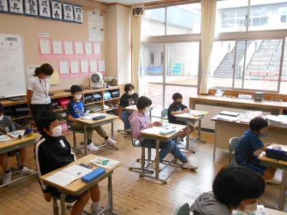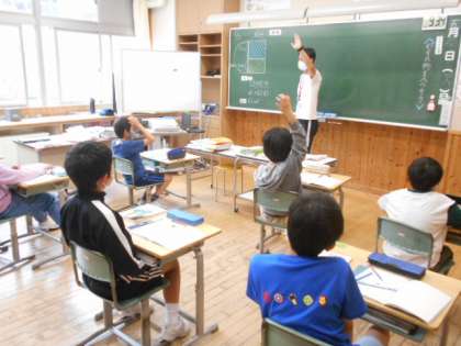 5年生は算数科で、小数のかけ算の工夫について学習しました。より簡単に計算ができる方法を考えました。