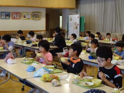 たくさんの食材が入っているすき焼きを、子供たちはおいしそうに食べていました。